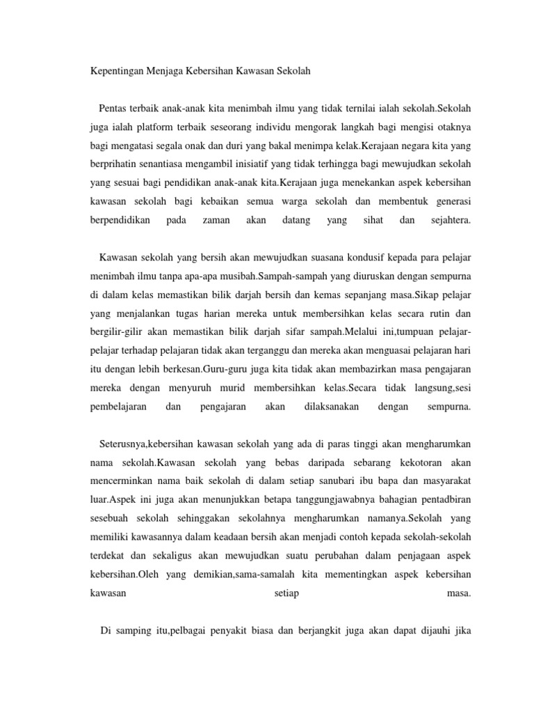 Kepentingan Menjaga Kebersihan Kawasan Sekolah 1 Pdf